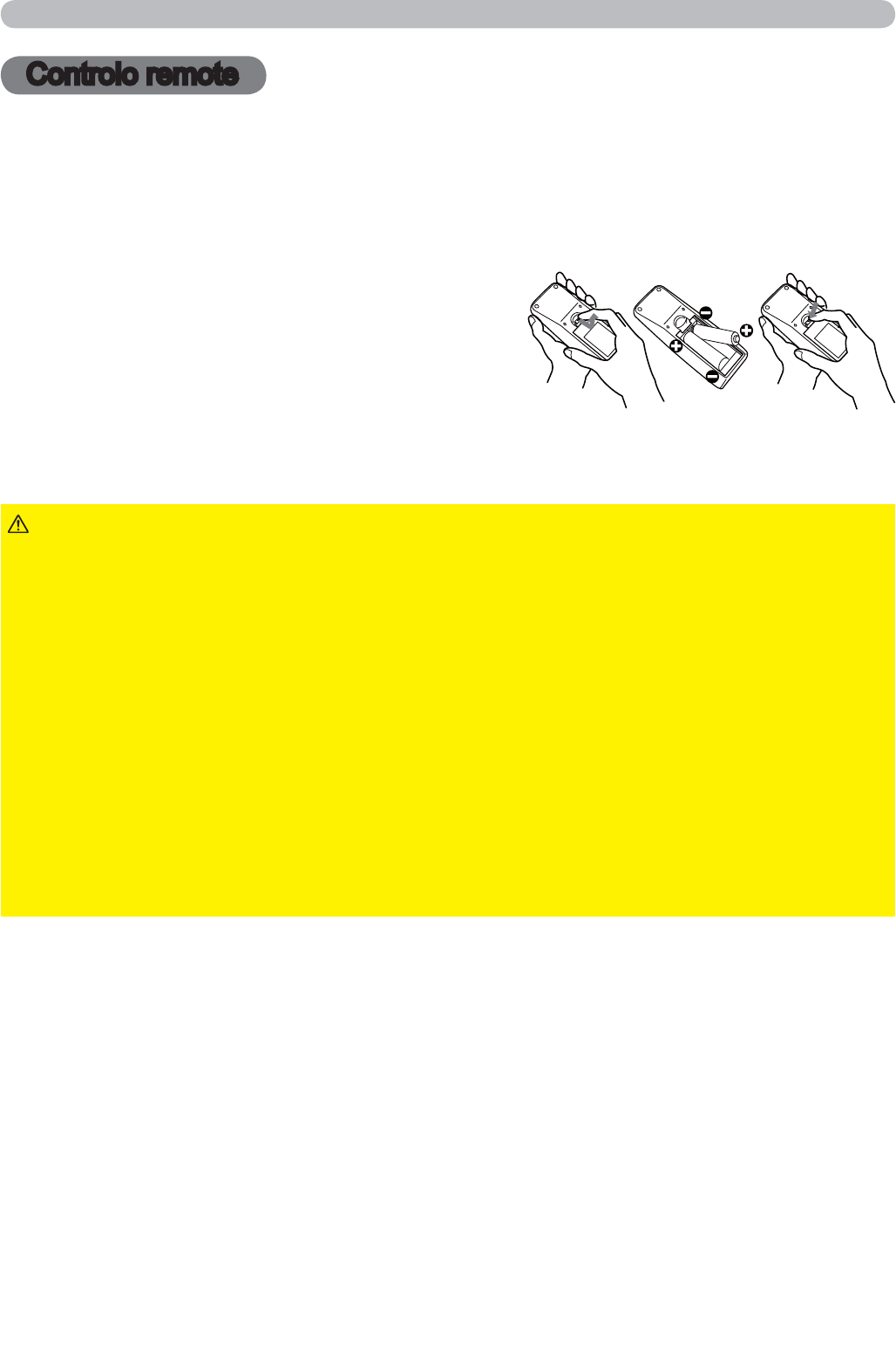 remote por um longo período remova as baterias do controlo remote e armazene-